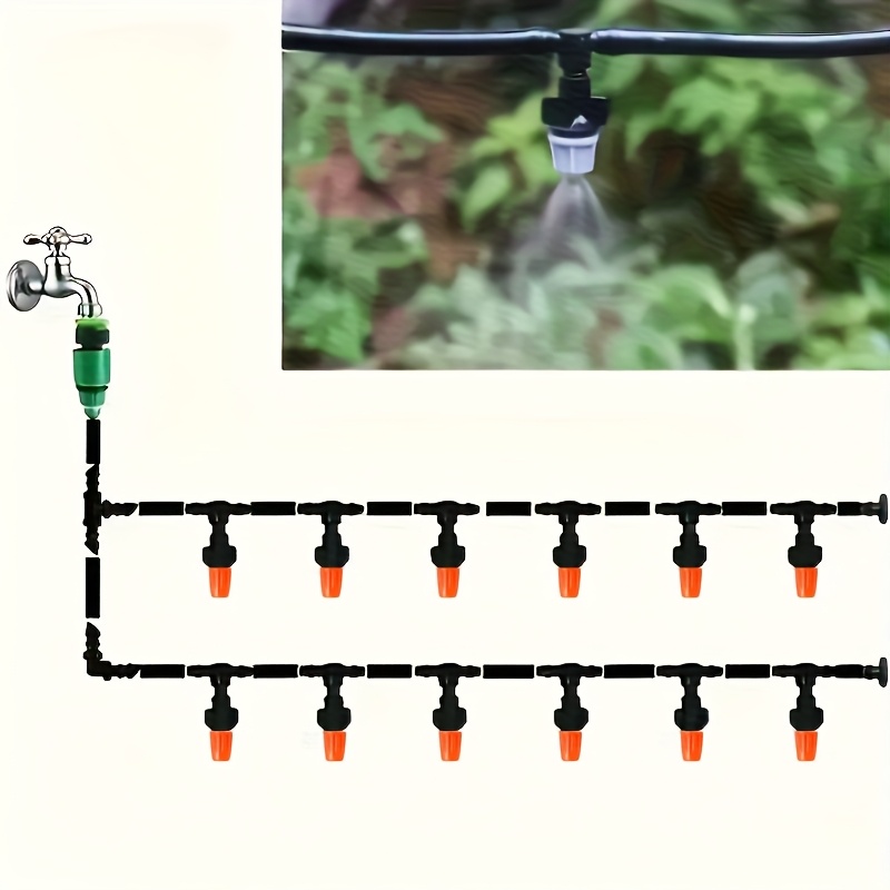TEMU DOOOB 50피트 내구성 있는 플라스틱 정원 관수 시스템, 조절 가능한 스프링클러 15개 포함 - 전기 불필요, 잔디 관리 및 농업용 간편 설치, 날씨에 강한 디자인, 효율적인 물 분배 | 고유연성 호스, 잔디용 스프링클러