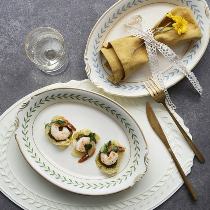 키친스타일 시라쿠스 로렐 리프 도자기 그릇 브런치 파스타 오발 볼 26cm