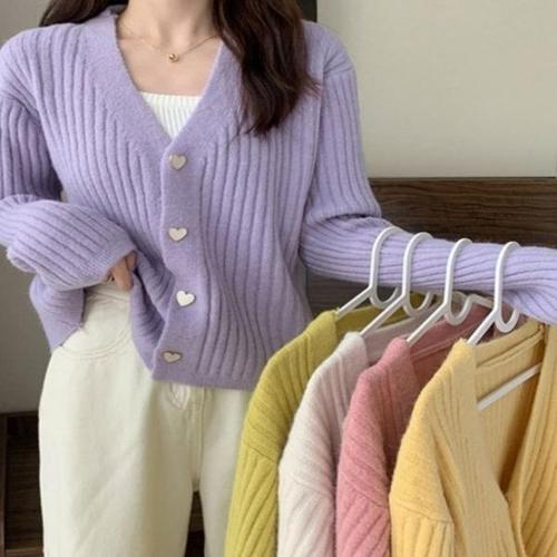 [엄지척]여자 파스텔가디건 하트단추 여성 브이넥가디건 4컬러_19803948_667501