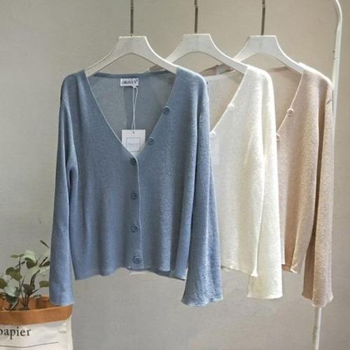 [엄지척]봄 여름 가을 얇은 니트 가디건 파스텔 나팔 소매_19806934_667501