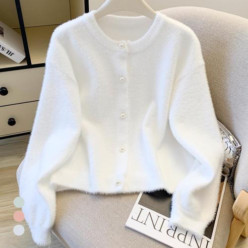 제니트 여성 보송 폭닥 라운드넥 긴팔 니트 가디건 베이직