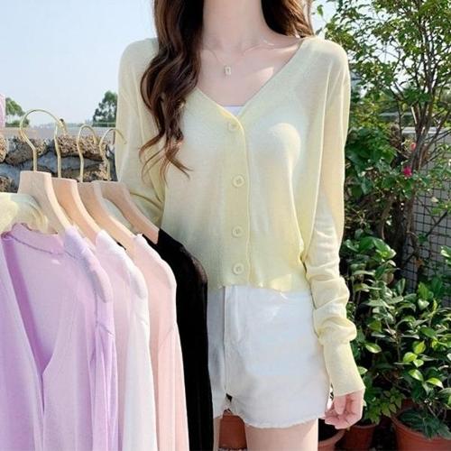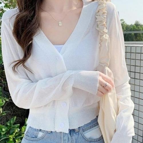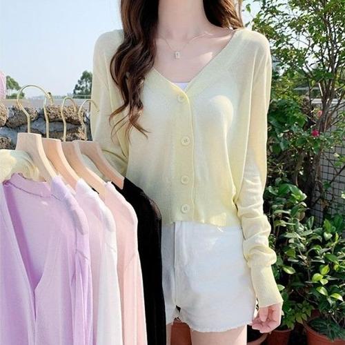 [엄지척]파스텔톤 여성 여름 긴팔 브이넥 가디건 얇은 시스루_19806211_667501