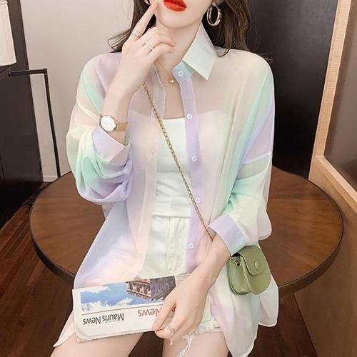 [엄지척]파스텔 레인보우 셔츠 캔디 시스루 여성 가디건_19808267_667501