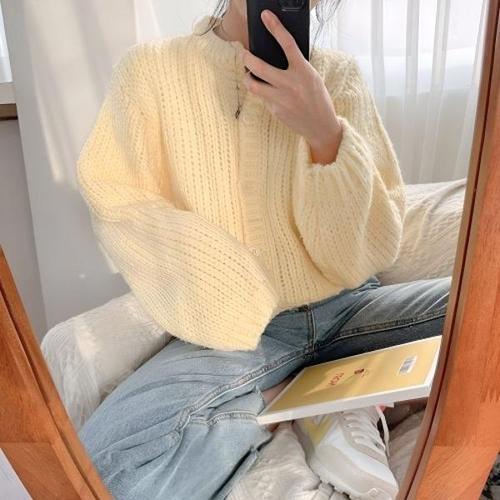 [엄지척]가디건 여성 세미크롭 파스텔 굵은짜임 니트 라운드넥_19804269_667501