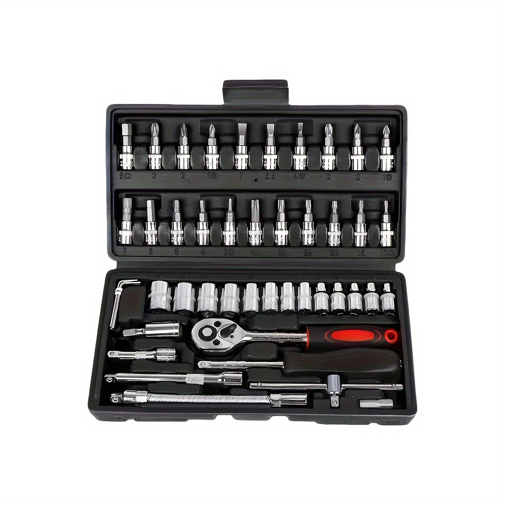 TEMU 46개 크롬 반디움 스틸 소켓 렌치 세트, 1/4인치 드라이브, 래칫, 유니버설 조인트, 메트릭 확장, 드릴 어댑터 포함, 자동차 및 가정 수리용, 저장 케이스 포함 - 블랙