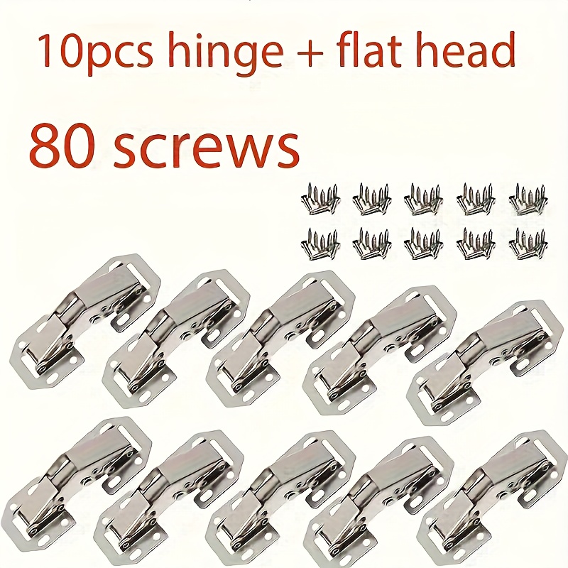 TEMU 스틸 힌지 세트 90개 (10개 힌지 + 80개 플랫 헤드 나사), 90도 프렌치 스프링 힌지 | 무드릴 설치, 프레임리스 캐비닛용
