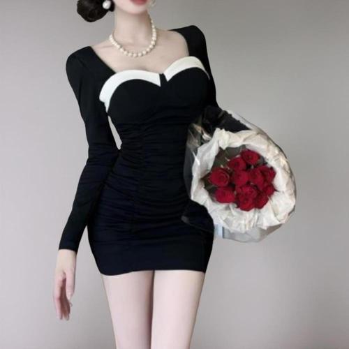 [미라클세븐]여성 하트넥 셔링 미니 원피스 투톤 배색 파티룩