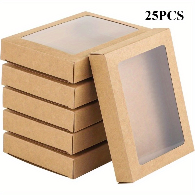 TEMU 25개 크래프트 종이 인사말 카드 & 사진 보관 상자 투명 창 포함 - 11.43x15.24x2.54cm 카드, 봉투, 루스 사진용 정리함 - 내구성 있는 튼튼한 적층 디자인, 인사말 카드 정리함, 강화된 구조, 문구류 정리,공예 애호가,문구류 애호가|편지지