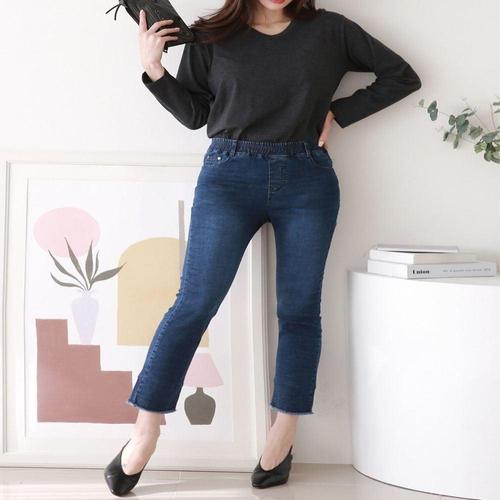 [옷자락]여자 스판 워싱 8부 배기진 히든밴딩 청바지