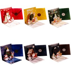 아이엔피 크리스마스 6종 베이직 팝업입체카드 + 봉투 + 스티커 세트 POP-01 11 x 11 cm, 레드+옐로우+그린+블루+네이비+브라운, 6개입