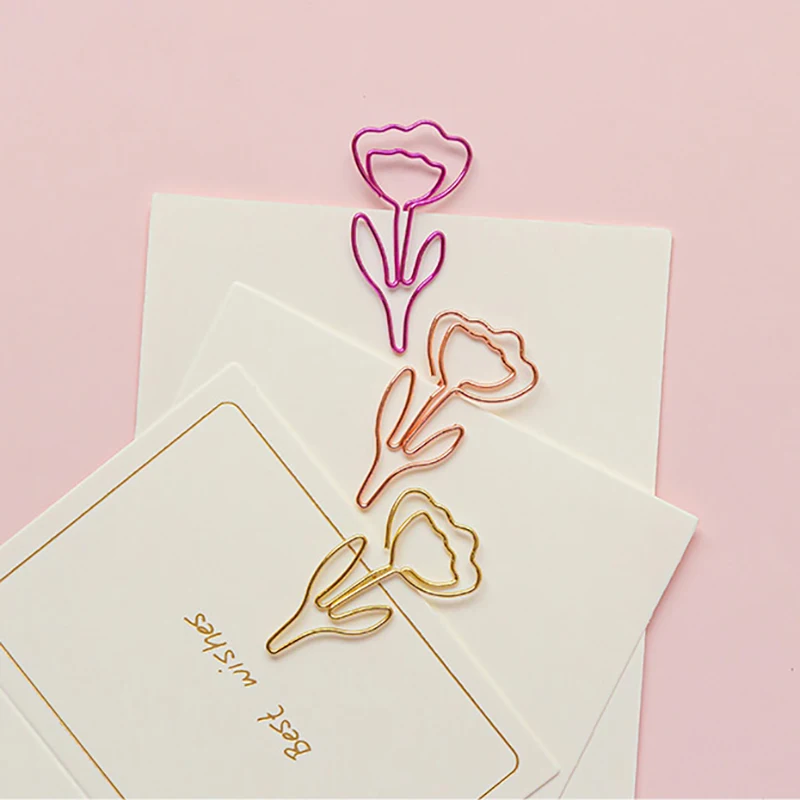 10개 세트 컬러 꽃 모양 종이 클립 컬러 종이 클립 사무용 문구 금속 북마크 홀더 문구 종이 클립