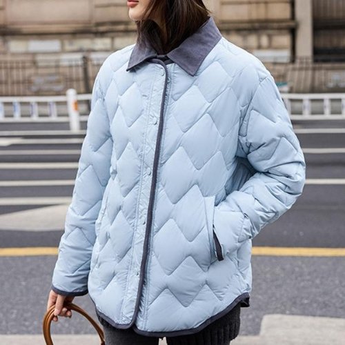 [패션시그널] 스냅버튼배색엣지 셔츠카라 패딩점퍼 CC8584