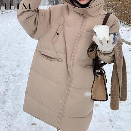 여성 오리털 화이트 자켓 모자 후드 경량 패딩 프리미엄 겨울 점퍼 경량 패딩 여성 의류 점퍼 코트 잠바