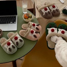 폭신 루돌프 겨울 털실내화 커플 패밀리룩 아동 어른 공용 보온 슬리퍼 홈슈즈