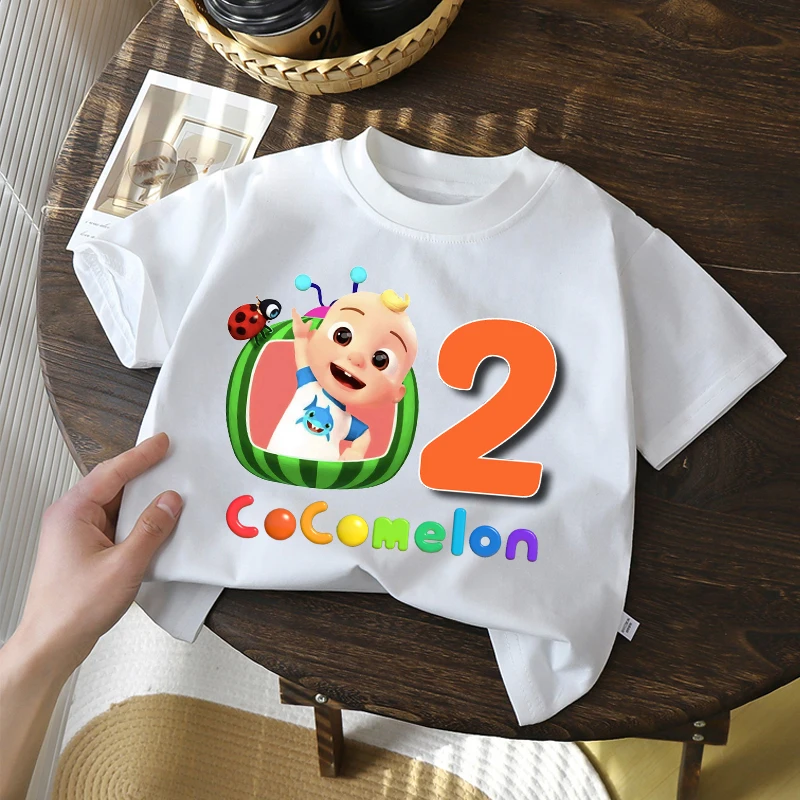 Cocomelons 어린이 생일 번호 1-10 티셔츠 만화 애니메이션 소년 소녀 티셔츠 반팔 인쇄 어린이 탑 여름 옷