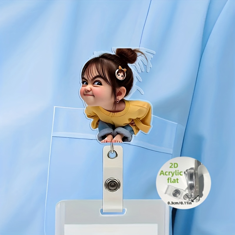 TEMU 2D 평면, 장난꾸러기 소녀 2D 아크릴 리트랙터블 배지 릴 홀더 - 간호사, 간호 명찰, 의대생, 의사, RN, NP ID 카드 클립용 - 리틀 태그 카드 홀더, 직장인용, 2D 평면