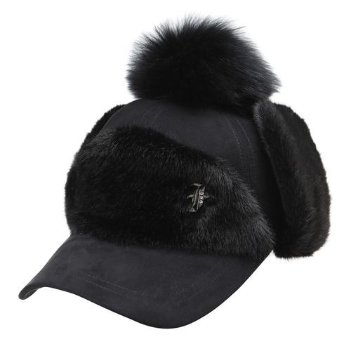 [팬텀]여성 폭스퍼 방울 퍼장식 귀달이 볼캡 BK_US
