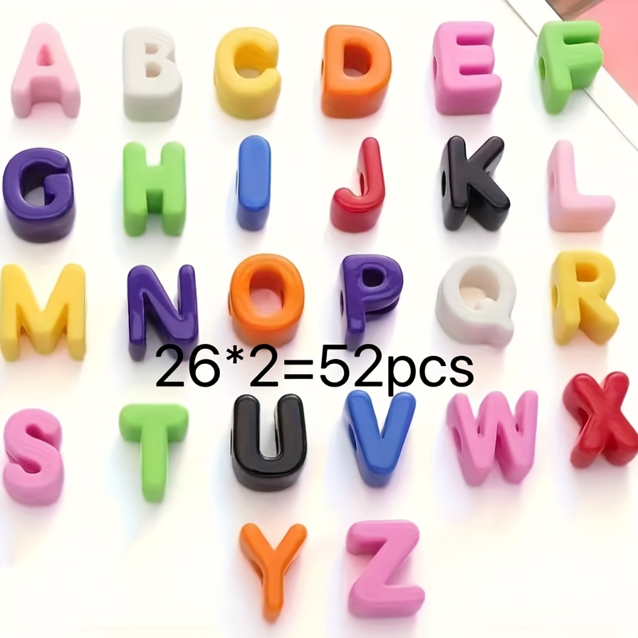 TEMU 아크릴 혼합 컬러 대구 알파벳 비즈, 52개, 26개 영문자, 각 2개, DIY 펜던트, 파라코드 공예, 주얼리 액세서리용