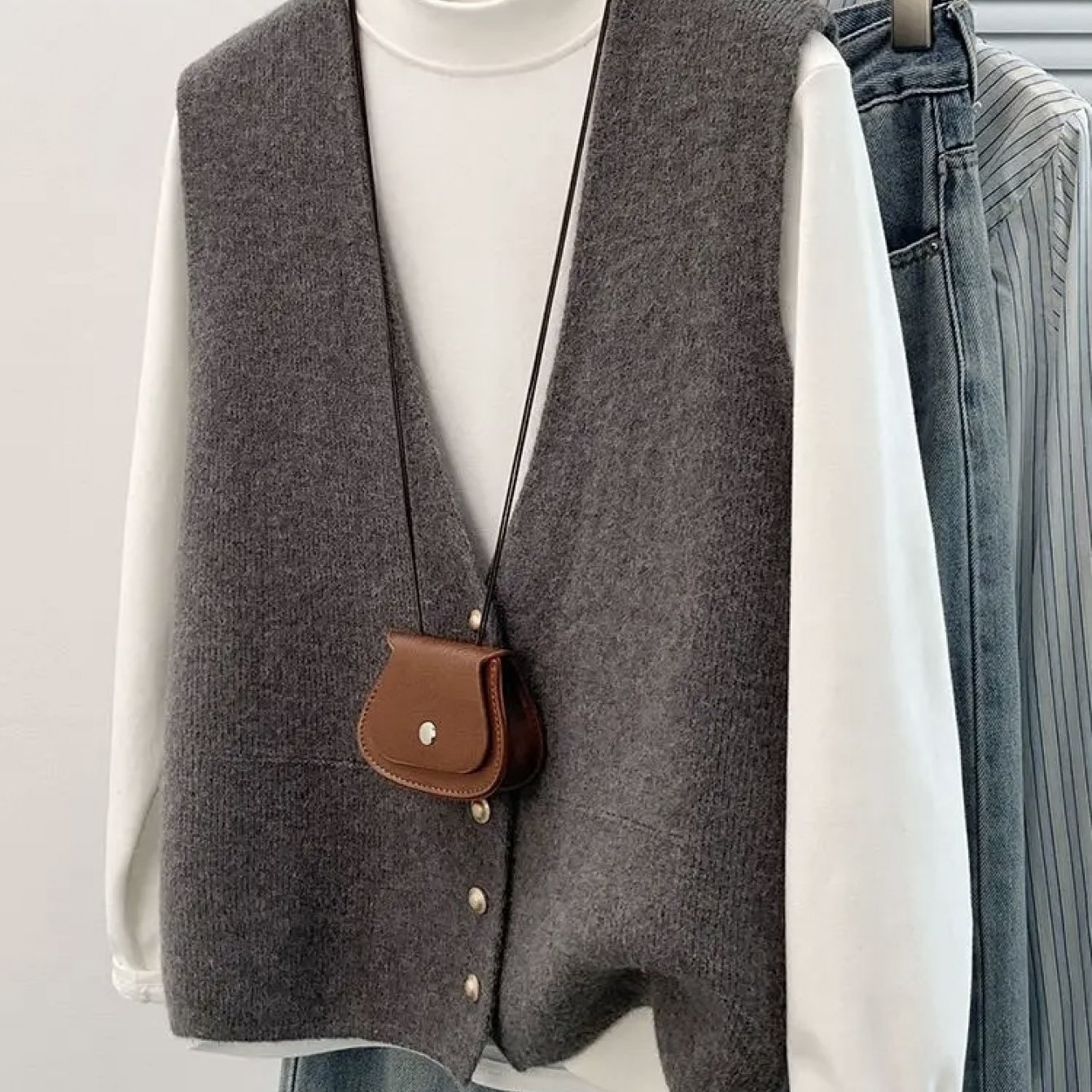 TEMU 프렌치 스타일 우아한 솔리드 컬러 루즈 V넥 민소매 패브릭 가디건 베스트, 봄과 가을 출퇴근 및 캐주얼 착용에 적합 ASD1