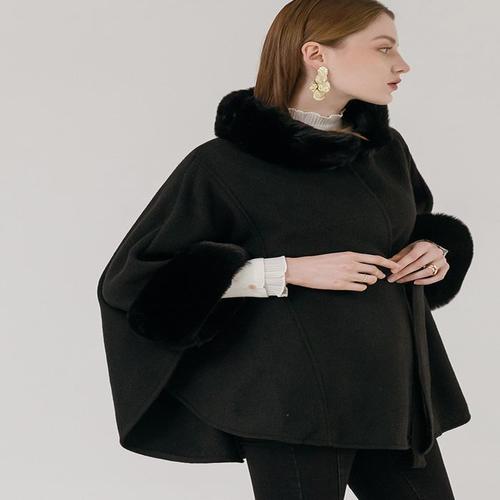 POMTOR 빅 래빗 퍼 하프코트 모직코트 케이프코트 캐시미어코트