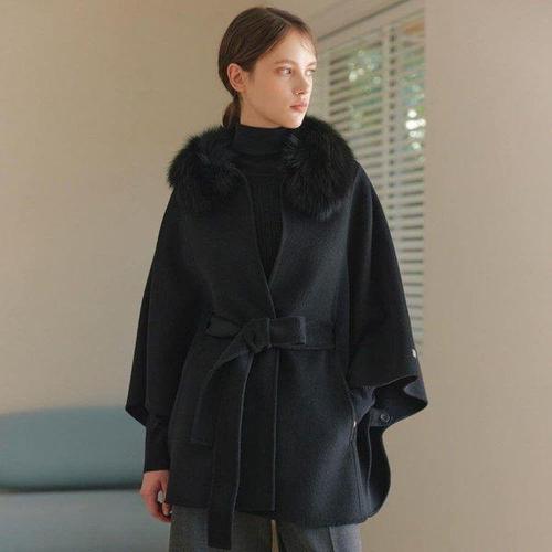 [더아이잗]폭스퍼 칼라 캐시미어 케이프 코트