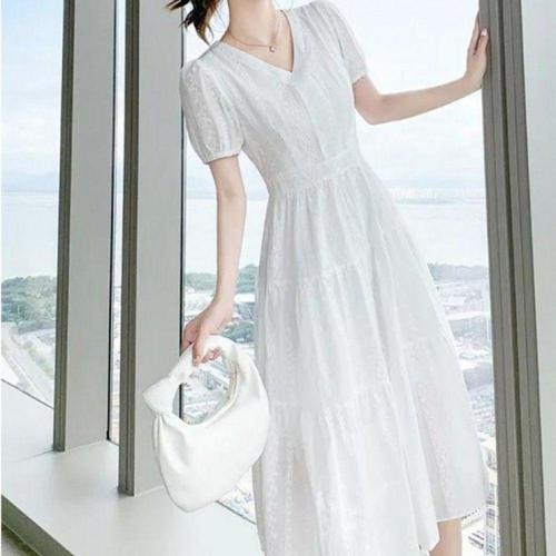 [오너클랜]인기상품 면 롱 원피스 퍼프 반팔 여름 드레스 루즈핏 치마 [WFLLIB1_260305]