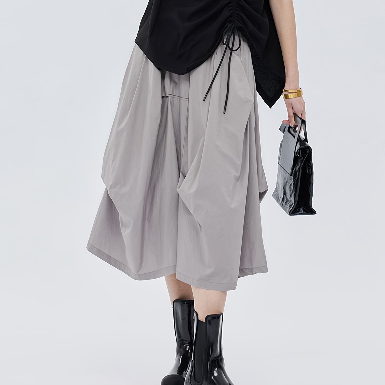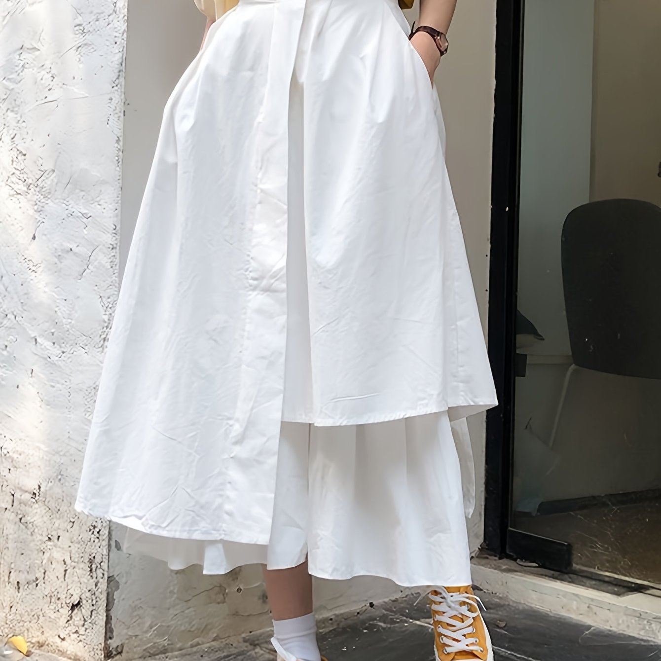 TEMU 일본 스타일 신상 솔리드 컬러 하이웨이스트 불규칙 A라인 업무 스커트