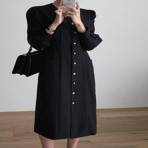 여성 5컬러 캐주얼 원피스 퍼프소매 라운드 롱원피스 WFJG31A