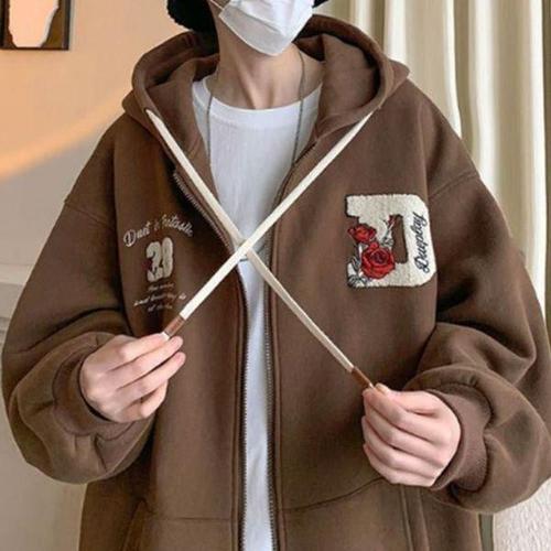 [옷자락]커플용 루즈핏 퍼프 프린트 후드 집업