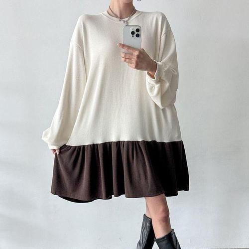 [신상오픈런]여성 투톤 퍼프 프릴 미니 원피스 빅사이즈 가을용