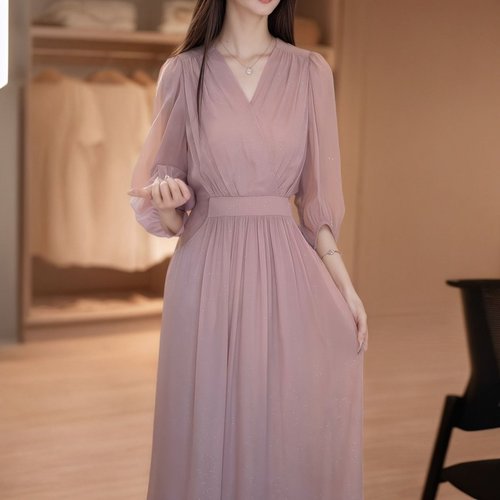 제로투올샵2 / 브이넥 퍼플 중기장 여름 레트로 슬림핏 원피스 라이트퍼플 XL