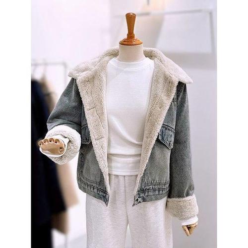 [BZJKGZKC_4B]여자 소프트 퍼 안감 데님 청 자켓 겨울