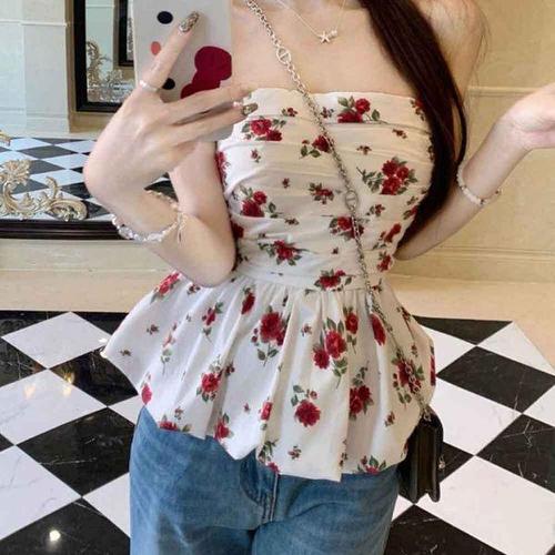 여성 꽃무늬 퍼프소매 블라우스 1P 오프숄더 반팔