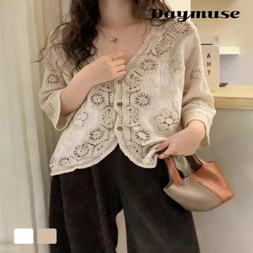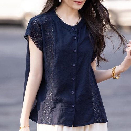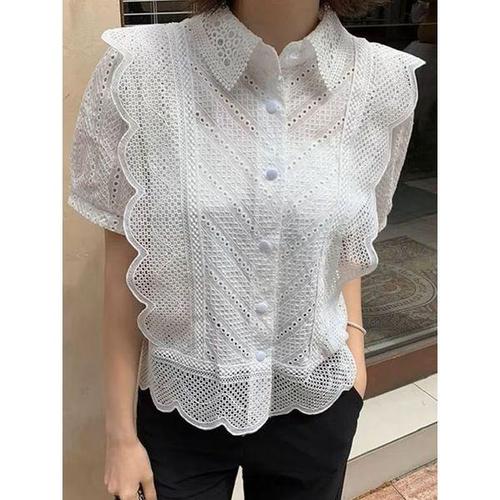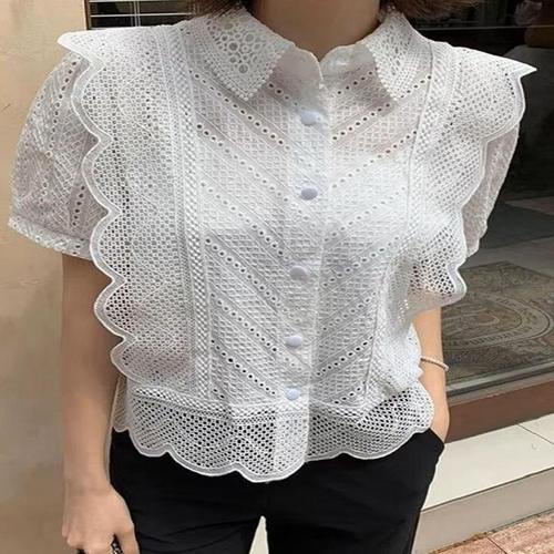 ( )여름블라우스 블라우스 출근룩 시원한 여름 상의 여성 반팔 레이스 펀칭 코디