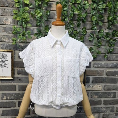 러블리 펀칭 레이스 반팔 블라우스 JSC-d0091