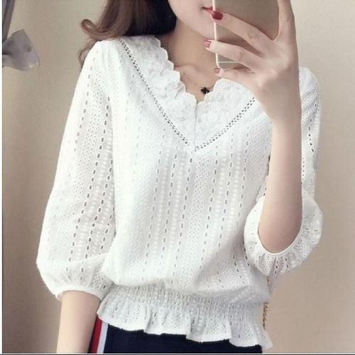 펀칭 자수 블라우스 LL-T155 레이스 밑단 캐주얼 디자인 여성