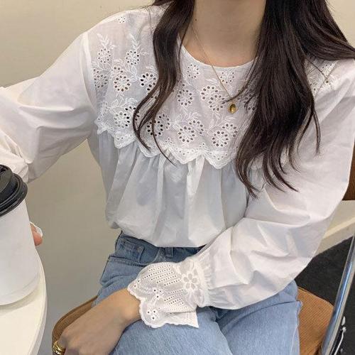 [셀러허브_여성트랜드패션]펀칭블라우스 자수 화이트블라우스 데일리