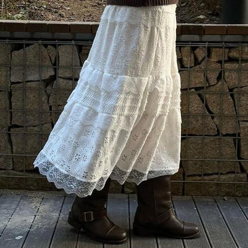 [옷자락]여성 펀칭 레이스 프릴 롱 스커트