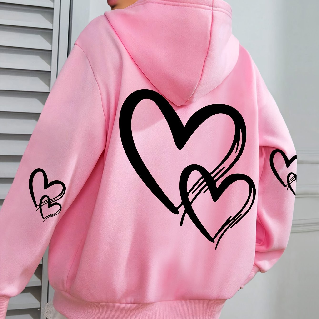 TEMU 플러스 사이즈, 하트 프린트 후드티, 가을 & 겨울용 캐주얼 긴소매 포켓 후드 스웨트셔츠, 여성용, 여성 플러스 사이즈 의류