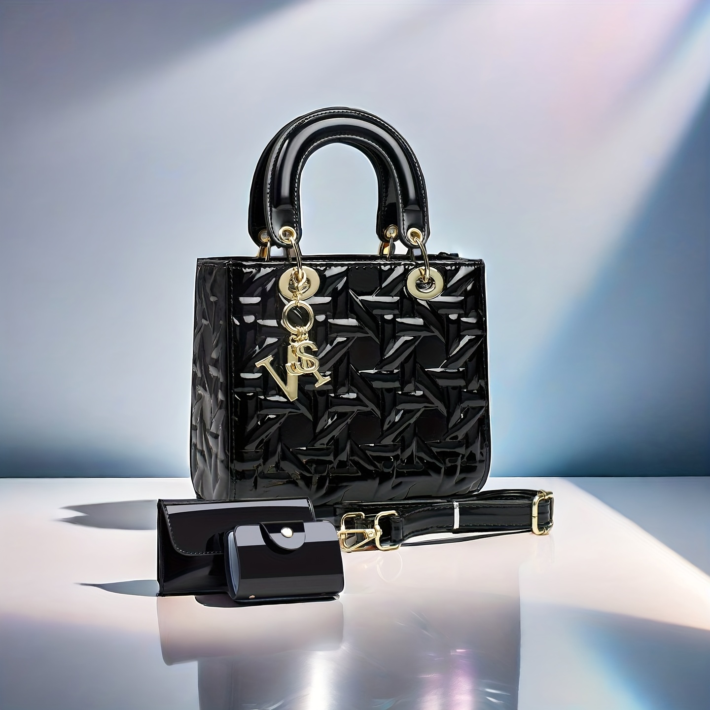 TEMU 2025년 신상 반짝이는 엠보싱 솔리드 컬러 스니커즈 핸드백, 캔디 컬러, 트렌디하고 활용도 높은 여성용 3종 세트, 휴대용 또는 숄더백으로 적합.