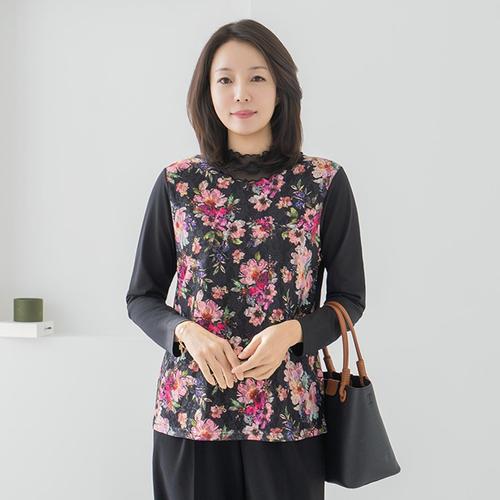 엄마옷 마담4060 플라워네줄폴라티셔츠-QTE2601053-