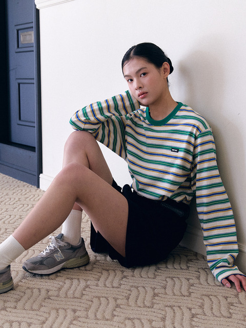 [샵아라] 파운드 케이크 스트라이프 로고 포인트 티셔츠_그린