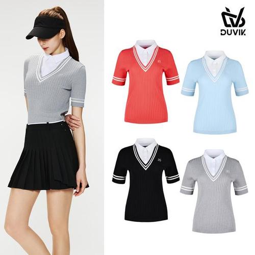 [텐텐] 듀빅 여성 페이크 Y카라 레이어드 반팔스웨터 DG2WSW221CR