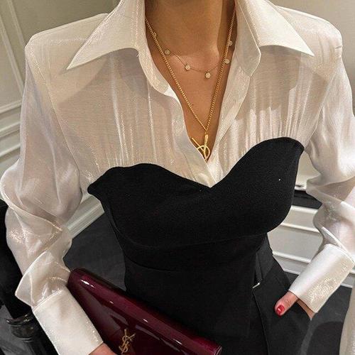[핑크엘리제]페이크 레이어드 셔츠 우아핏 세실로니블라우스