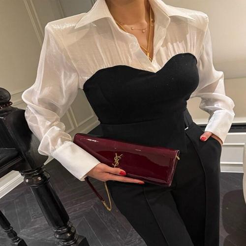 [휴드]시스루 셔츠 페이크 레이어 블라우스