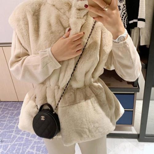 밍크 모피 페이크퍼 트위드 토끼털 회색 조끼 패션 후드 겨울