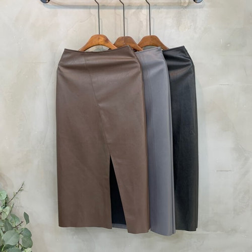 씨샵인더룸 / 로도 페이크 레더 사선 트임 슬림 롱 스커트 3color