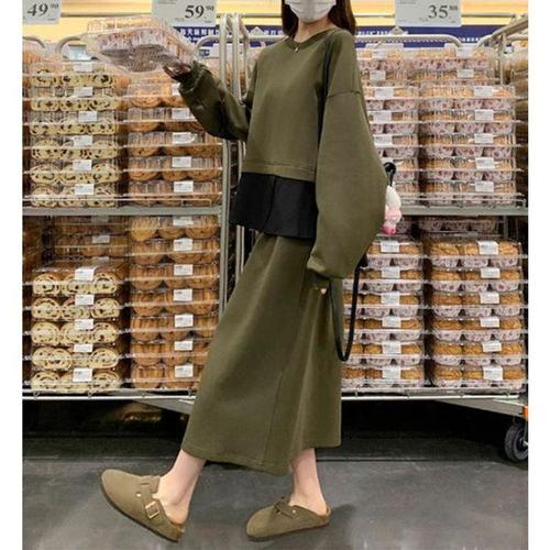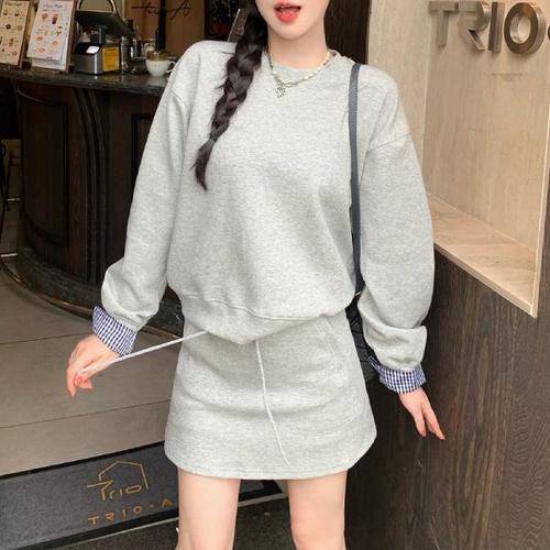 [무드수]맨투맨 스커트 츄리닝 세트 페이크 소매 투피스