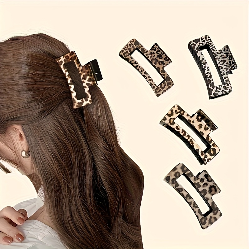 TEMU 4개의 고급 프린트 헤어클립 - 미디엄 사이즈 미끄럼 방지 아크릴 핸들, 두꺼운 긴 머리용 - 빈티지 Y2K 스타일, 봄 여름 발렌타인데이 액세서리