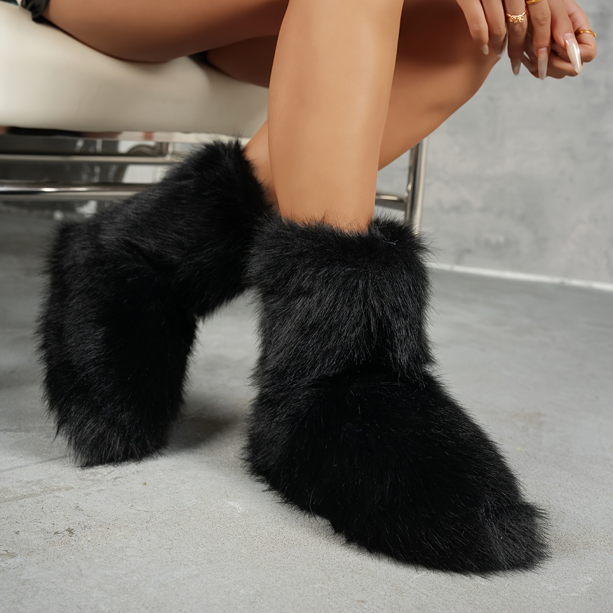 TEMU 여성용 겨울 부츠 - 인조 퍼 포함, 따뜻한 라운드 토 미드 캐프 스노우 부츠, 부드러운 소재 상단 & 밑창, 아이스, 눈길, 캐주얼 착용에 적합한 편안한 날씨용 신발